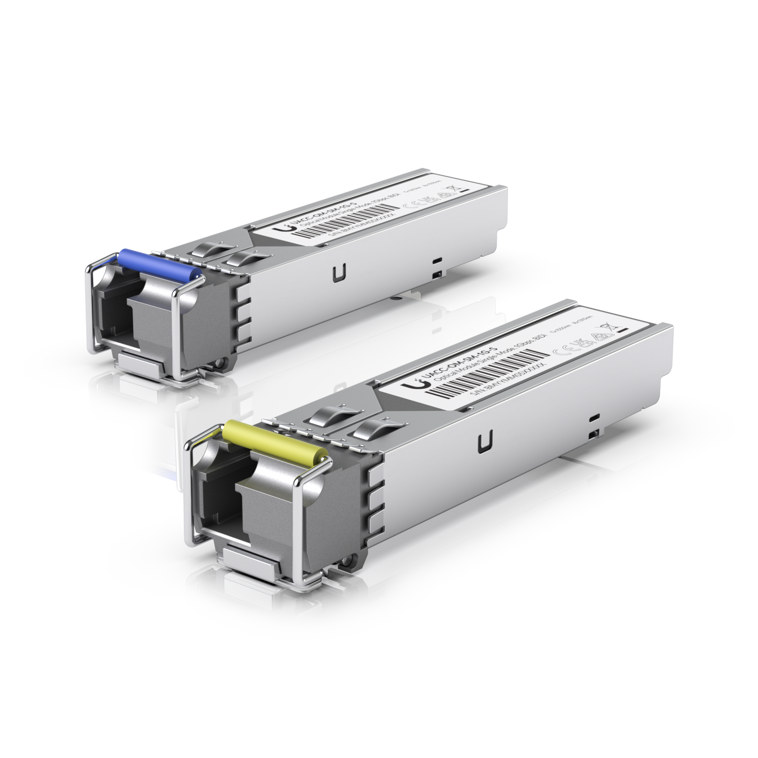 Transceptor SFP que suporta conexões de 1G até 3 km usando fibra monomodo com um conector LC UPC simplex.